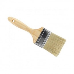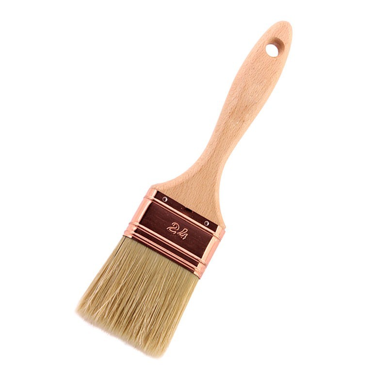 Trincha de duas polegadas (50mm) com cerda longa amarela e cabo de madeira de cor natural com verniz.