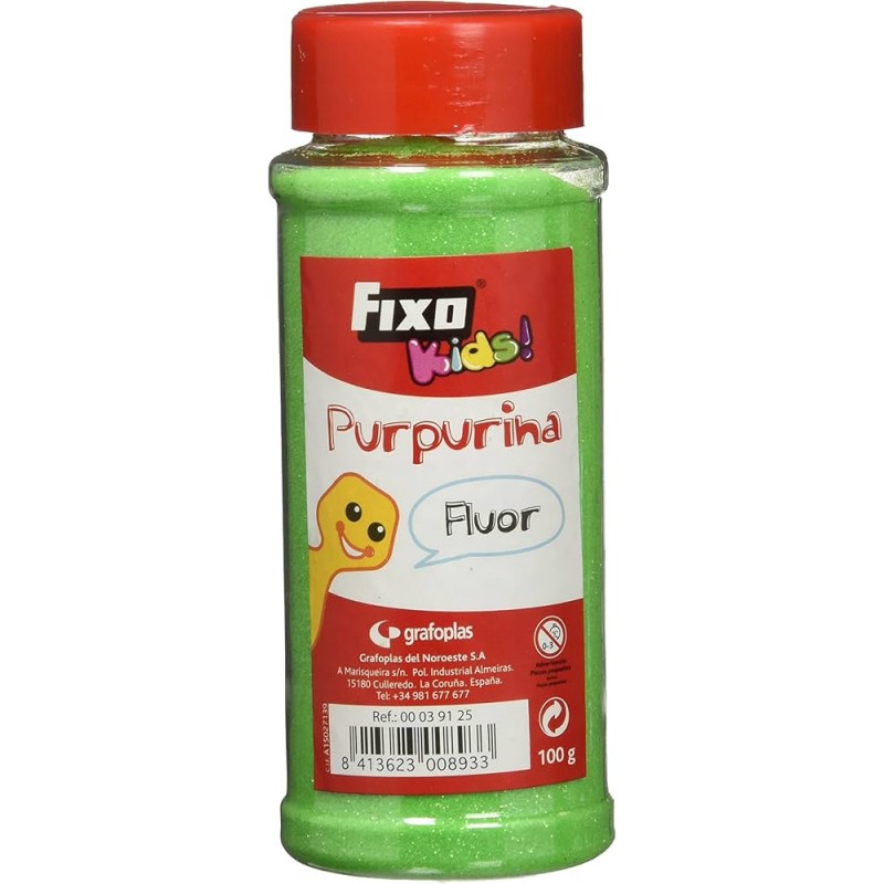 Frasco com 100 gramas de purpurina fina cor verde efeito metalizado fluorescente da FIXO