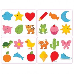 Propomos um jogo completo e evolutivo com os seguintes objetivos: Aprender o nome de cada cor; relacionar forma/silhueta; descobrir a predominância das cores nos objetos; desenvolver vocabulário