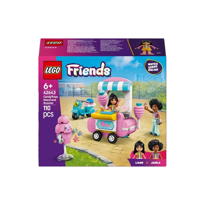 Inspire brincadeiras docinhas para as crianças 6+ com o LEGO® Friends Barraquinha de Algodão-doce e Scooter (42643). O set inclui 2 minibonecas LEGO Friends e inclui um carrinho de comida para construir, uma scooter, mascote e acessórios.