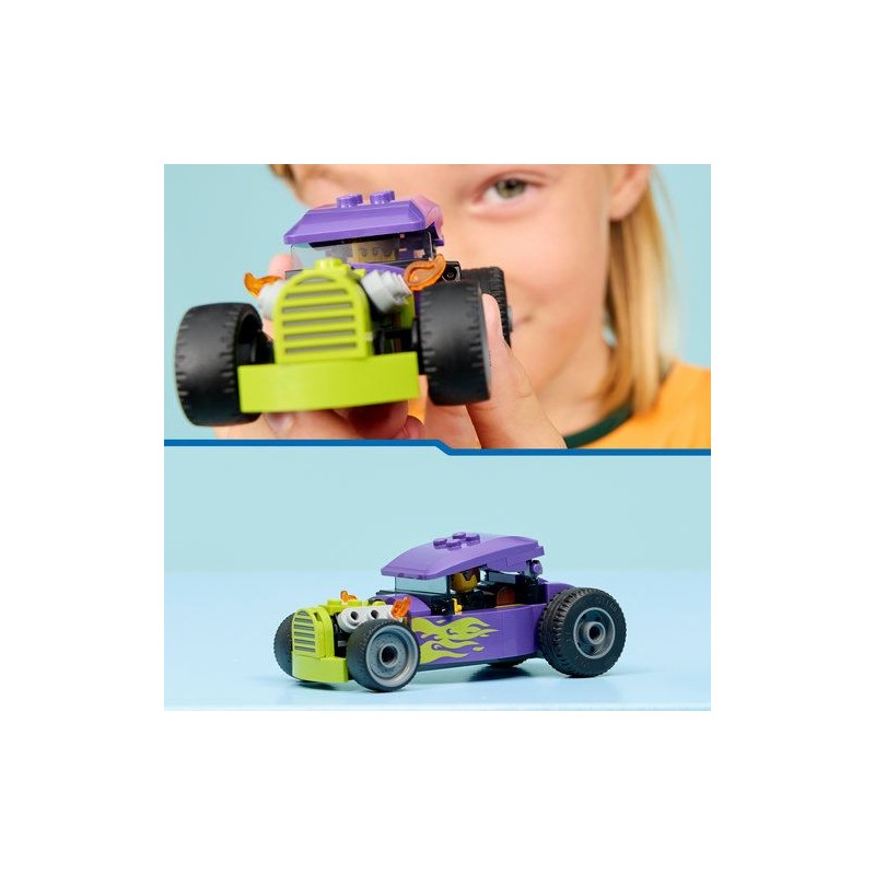 Os pequenos fãs de carros de corrida 5+ vão apertar o cinto e participar em ação de corridas velozes com o LEGO® City Hot Rod (60485). Este kit de construção de um modelo de carro inclui funções de corrida emocionantes e detalhadas, incluindo pneus traseiros grandes, cockpit para condutor com tejadilho que levanta e um esquema de cores roxo com chamas verdes néon. Basta adicionar a minifigura do condutor para brincadeiras de faz de conta velozes.