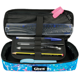 Porta lápis com 3 divisórias azul Grafoplas Recomendado para utilização escolar Bolsa central interior com fecho independente Com elástico para pega de mão e fixação no carrinho da mochila Com etiqueta no elástico personalizável com o nome do aluno Dimensões: 230x40x115 mm Da coleção Bits & Bobs 2023