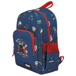 Mochila para utilização casual ou escolar Avengers da cerdá. Bolsa principal com fecho , segunda bolsa menor frontal com fecho. Com uma bolsa lateral aberta em rede. Pega de mão na parte superior. Alças almofadas e reforçadas ajustáveis. Costas almofadadas Dimensões: 300 X 410 X 140 MM