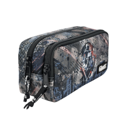 Porta lápis com duas divisórias e dois fechos de cor preta Kukuxumusu para utilização escolar