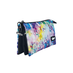 Porta lápis com 3 divisórias Rosa Grafoplas Recomendado para utilização escolar Bolsa central interior com fecho independente Com elástico para pega de mão e fixação no carrinho da mochila Com etiqueta no eslástico personalizável com o nome do aluno Dimensões: 230x40x115 mm Da coleção Bits & Bobs 2023
